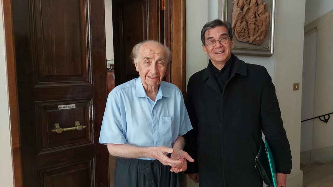 Originario di Balsoranno (AQ). Ordinato sacerdote nel 1955 a Roma. Preside dell’Istituto Apollinare di Roma dal 1958 al 2002. Canonico di San Giovanni Battisti dei Fiorentini poi promosso Canonico Vaticano nel 1998. Funge prima da Camerlengo poi dal 2008 assume l’incarico di Archivista. Fondatore della Fondazione Rezza Pro Cultura et Caritate.