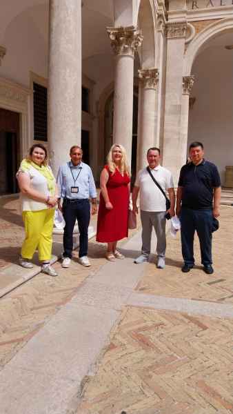 Il programma della delegazione ha toccato alcuni dei principali centri culturali italiani: Bologna, Pesaro, Venezia, Urbino, Roma, Deruta e Firenze. In ciascuna tappa l’arte si è rivelata terreno di dialogo, occasione di confronto e seme di nuove collaborazioni. A Pesaro è stato accolto il gruppo con un incontro che ha posto le basi di future cooperazioni con il Liceo Artistico Ferruccio Mengaroni. A Venezia e a Firenze, respirando l’eredità del Rinascimento, la delegazione ha potuto confrontarsi con la grandezza del patrimonio artistico italiano. A Urbino sono stati approfonditi i progetti di scambio accademico e le prospettive di collaborazione con il Dipartimento di Restauro dell’Università, a beneficio dei giovani artisti. Roma, con i Musei Vaticani e la Basilica di San Pietro, ha offerto il cuore spirituale del viaggio, mostrando come fede e cultura siano intrecciate in un’unica radice di bellezza. A Deruta, centro storico della ceramica, l’incontro con il sindaco Michele Toniaccini ha aperto la via a progetti congiunti di formazione e valorizzazione dell’artigianato. Il cammino si è concluso alla Galleria degli Uffizi di Firenze, custode di capolavori di Leonardo, Botticelli e Tiziano: simbolo eloquente di un’eredità che continua a ispirare il presente.