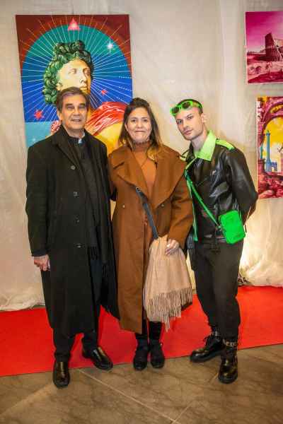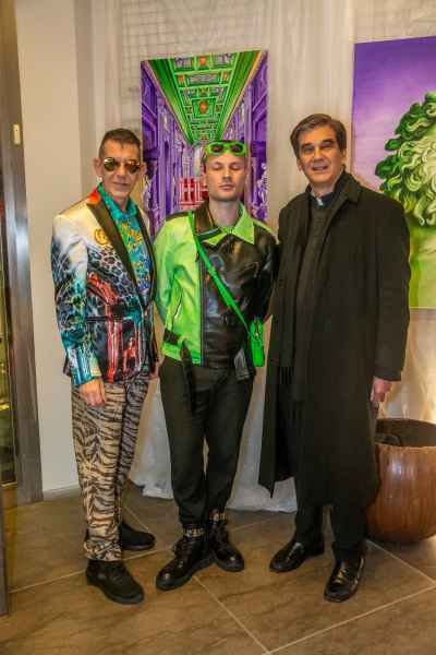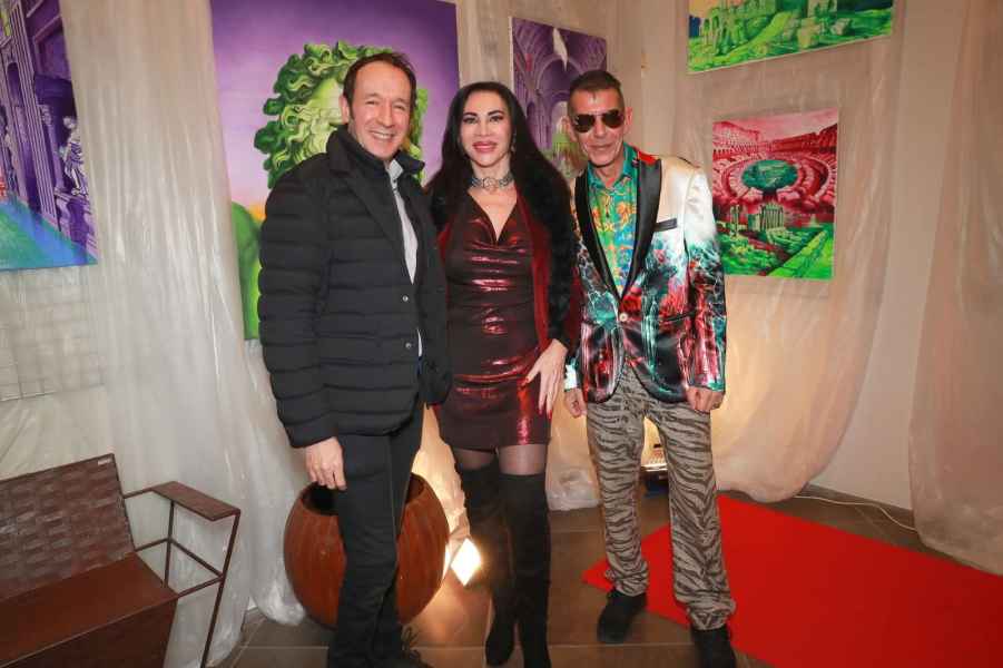 A bearsi delle opere dell’artista che ormai vive a Roma da un decennio, introdotto dalla splendida giornalista Barbara Castellani, in outfit candido e oro, la principessa Maria Pia Ruspoli, in elegante completo di velluto nero con il suo inseparabile barboncino Nino, dall’Ambasciata di Bulgaria Nikolai Bogdanov, Monsignor Jean-Marie Gervais, Presidente dell’Associazione Tota Pulchra, l’attore Pietro Romano, la designer di gioielli Stefania Barbesi, l’astrologo Massimo Bomba, il giornalista americano, amato da Fellini, l’attore internazionale e Ambasciatore della Pace italo-americano Wardal (Conte Federico di Wardal), l’artista Massimiliano Ferragina, il produttore musicale Dany De Van, il colonnello della Guardia di Finanza Giuseppe Giannone, la criminologa e psicologa Stefania Cacciani, la designer di mobili Gianna Tedeschini, l’artista e ex Miss Modella di Miss Italia Elisabetta Viaggi, Laura Cataldi manager dell’Hotel Antico Palazzo Rospigliosi; e ancora i professionisti Giuseppe Pietrafesa, Francesca Armini, Ekaterina Shevliakova e Fabio Tocco.