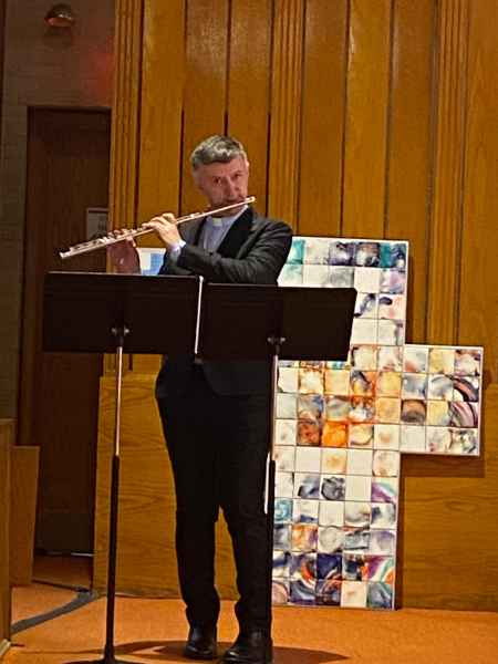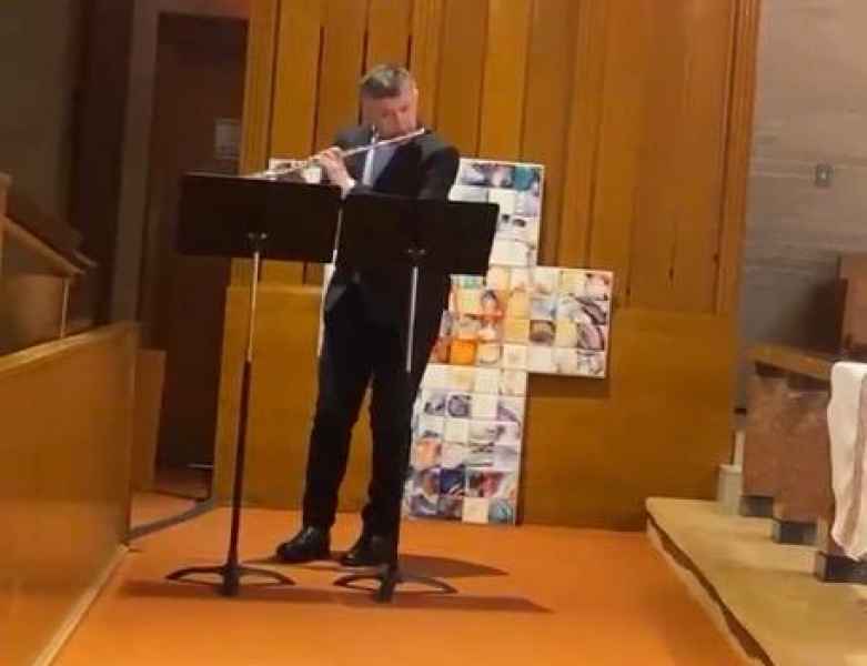 “Applause and emotion for father Marco Baragli. A mystical journey between flute and piano in Boston”.