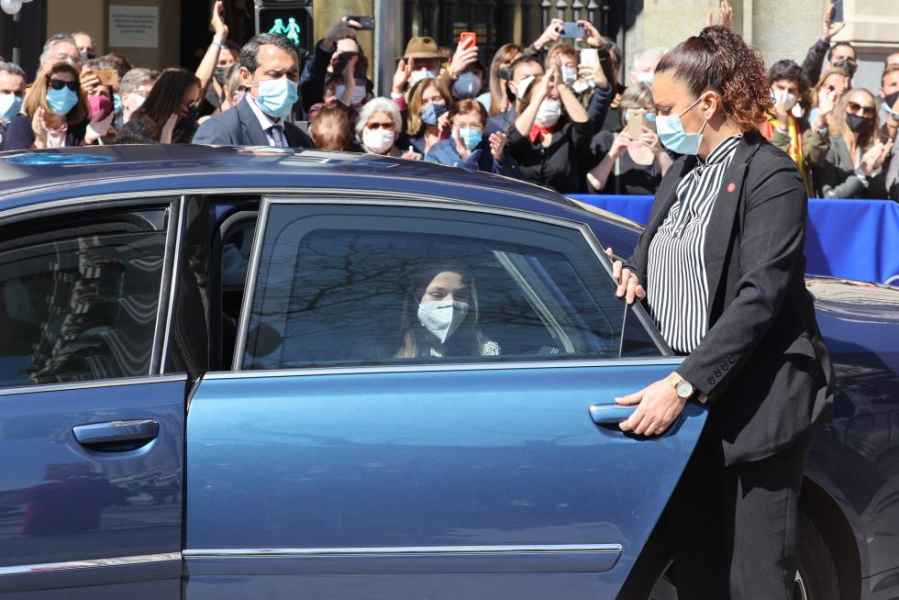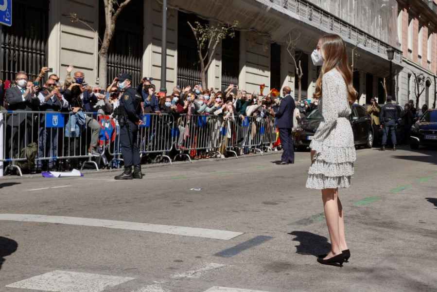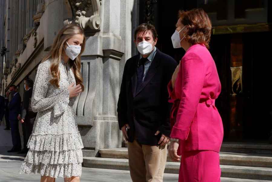 Al salir del edificio, la princesa fue aclamada con aplausos y gritos de "¡Viva el rey y viva la princesa!". Tras despedirse de Carmen Calvo y Luis García Montero llevándose la mano al corazón, Leonor se marchó en el coche oficial.