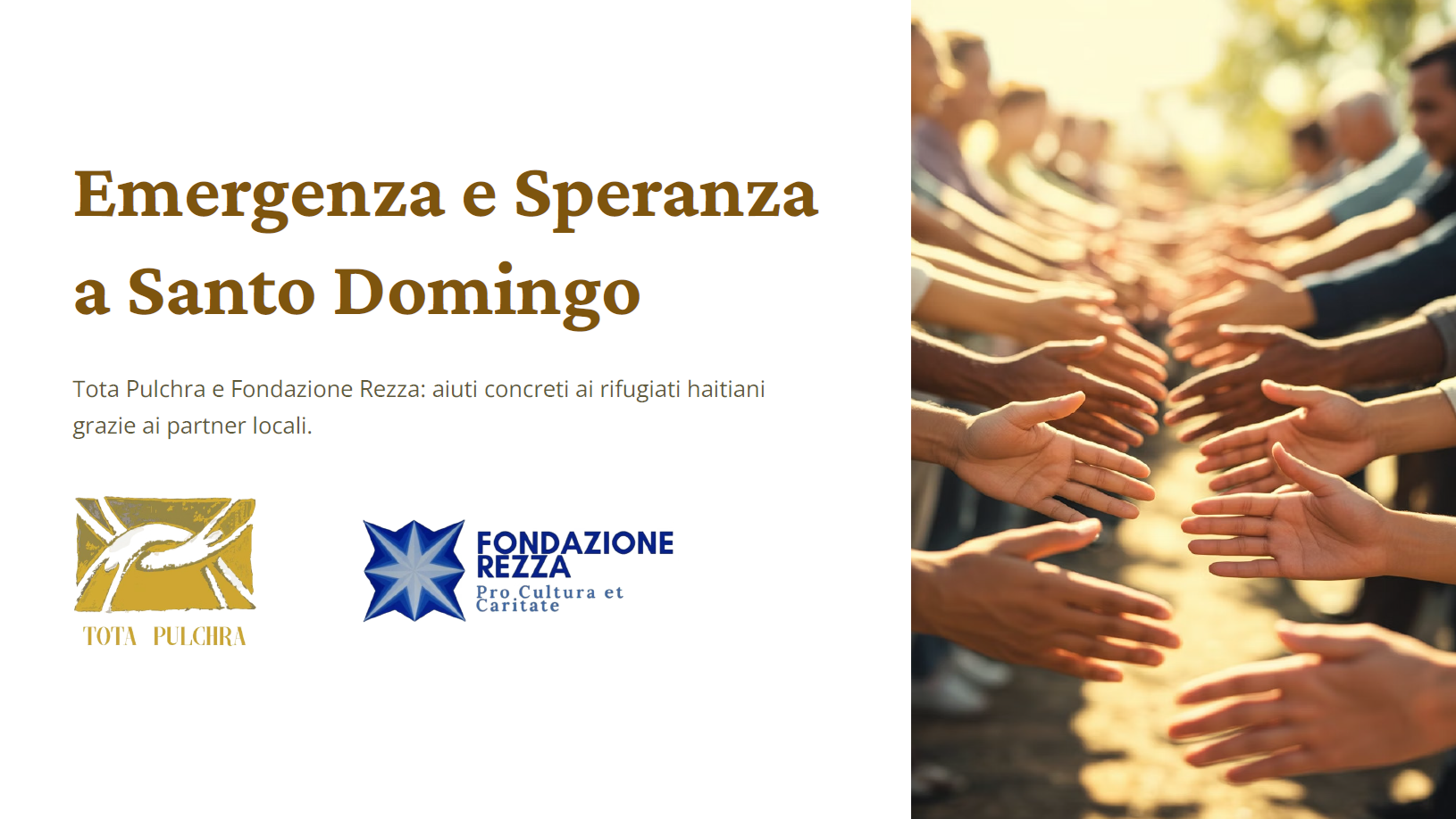 - Annuncio inizio missione: https://totapulchra.org/index.php/comunicati/1471-a-santo-domingo-inizia-oggi-la-missione-di-tota-pulchra-e-della-fondazione-rezza-pro-cultura-et-caritate-a-favore-dei-rifugiati-di-haiti