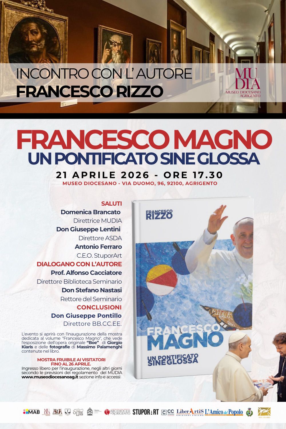 La Delegazione Sicilia dell’Associazione Tota Pulchra, con sede in Agrigento, è lieta di invitare soci, amici e tutti gli amanti della cultura e della bellezza alla presentazione del volume del carissimo socio Prof. Francesco Rizzo, “Francesco Magno. Un Pontificato Sine Glossa”, che si terrà martedì 21 aprile 2026 alle ore 17:30 presso il Museo Diocesano di Agrigento.