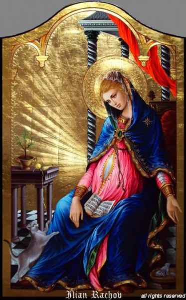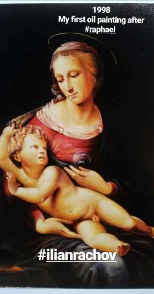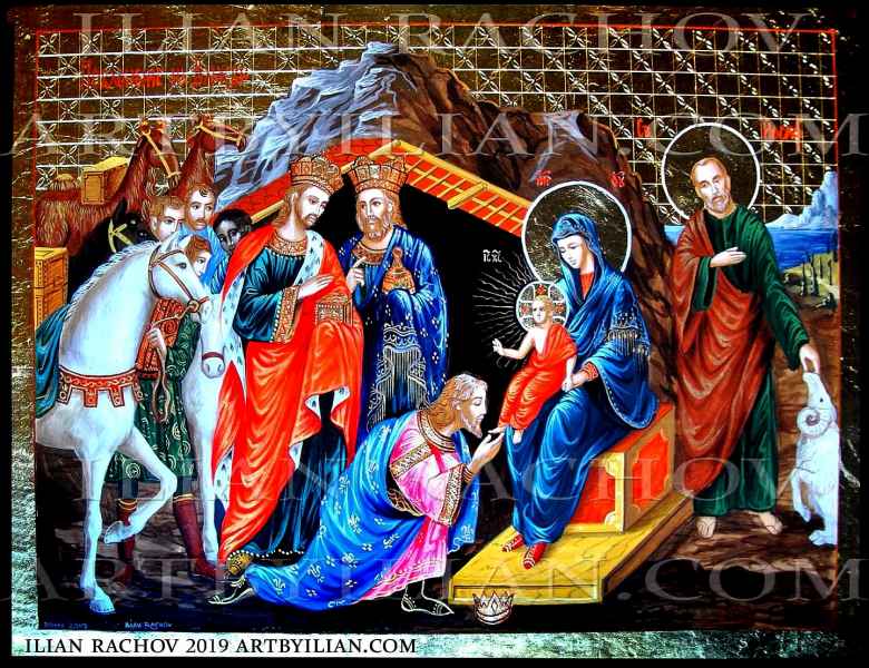 Ilian Rachov, artista nato a Sofia (Bulgaria) inizia la sua attività artistica nel 1990. Le sue icone sacre, ormai sparse in tutto il mondo, si distinguono per la brillantezza dei colori, la particolare lavorazione di incisioni sulla doratura a foglia oro e la bellezza dei visi.