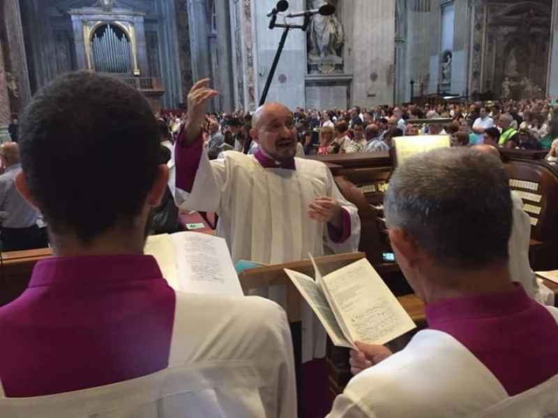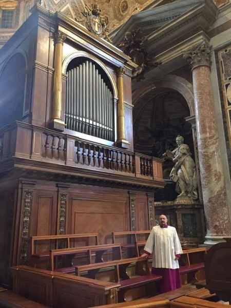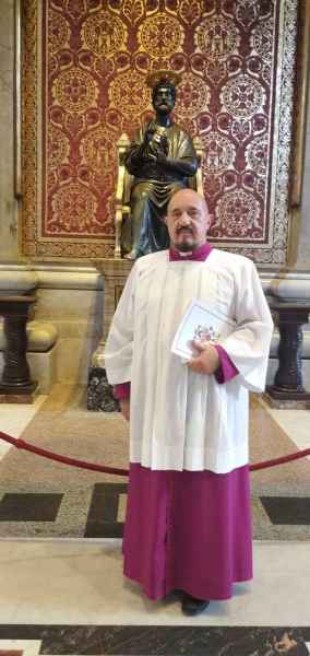 È Cantore Titolare e Decano già Maestro Vicario, con tre maestri succedutisi nel tempo, della Venerabile Cappella Musicale Giulia della S.S. Basilica Papale di S. Pietro in Vaticano dal gennaio 1980, entrato nel 1979 come uditore con il Maestro Armando Renzi con cui aveva sostenuto tempo prima l'esame di "solfeggio, setticlavio e materie complementari" per il corso di pianoforte al Conservatorio di Santa Cecilia in Roma.