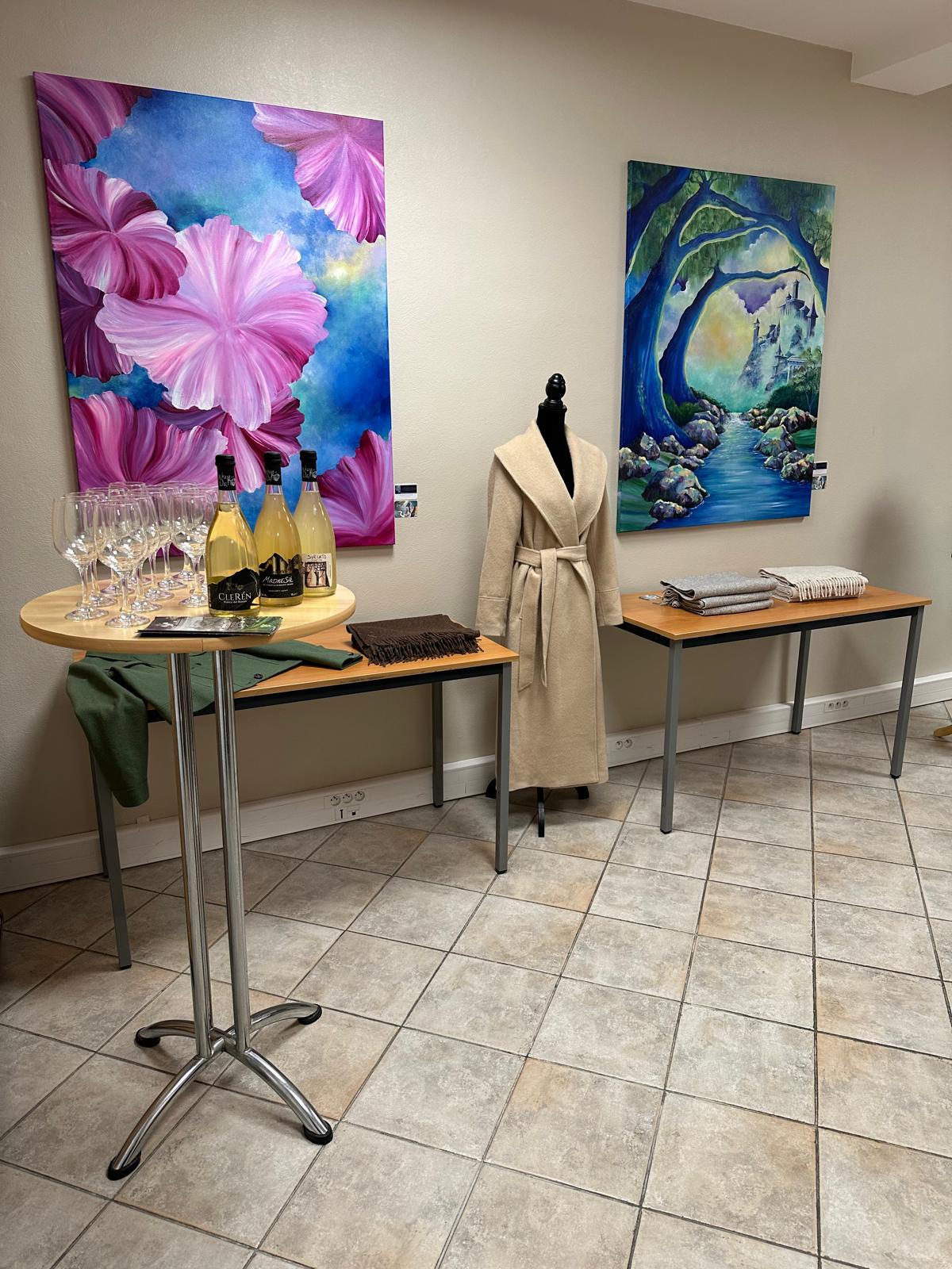 Un dialogo tra arte contemporanea e alta moda responsabile. L’esposizione è stata concepita come un’esperienza immersiva: un incontro tra pittura monumentale, presenza tessile e degustazione d’autore.