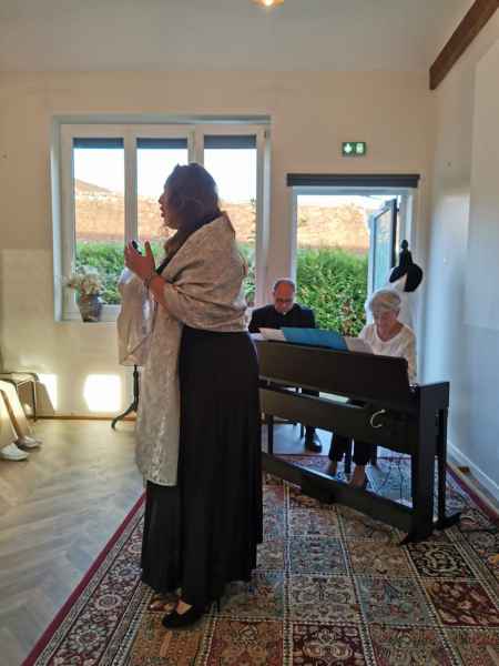 Uno dei momenti clou di questa mostra è stato il concerto organizzato nel cuore della settimana espositiva, domenica sera, per permettere agli imprenditori della regione (membri di un'associazione appena nata) di venire a scoprire non solo questa mostra ma parlare con un’imprenditrice indipendente. Dopo bellissimi scambi professionali, Raúl Gámez, baritono, accompagnato da Natacha Hamouma-Goguel, soprano e Monique Equoy, pianista, ci ha offerto un'ora musicale molto piacevole con un programma vario che ha deliziato tutti i partecipanti.