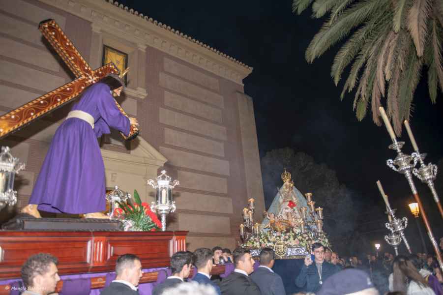 Ambos cortejos estaban formados por la cruz parroquial, representación de la junta de gobierno de cada hermandad con su guión corporativo, acólitos ceroferarios con el pertiguero y acólitos Turiferarios. Detrás cada una de las Sagradas Imágenes. En el último tramo del cortejo se encontraba los fieles que acompañaban al Señor y a su Santísima Madre.