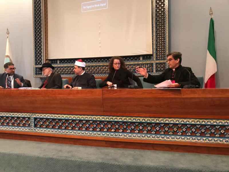 A fare gli onori di casa l’imam della Grande moschea di Roma Nader Akkad, che unitamente al rav Scialom Bahbout (presidente del Centro Internazionale di Ricerca Sistemica) e a Mons. Jean–Marie Gervais (presidente dell’ Associazione Tota Pulchra nonché Prefetto Coadiutore del Capitolo della Basilica Papale di San Pietro in Vaticano), hanno lanciato un messaggio di rispetto comune e reciproca fratellanza senza rinnegare la propria ideologia.