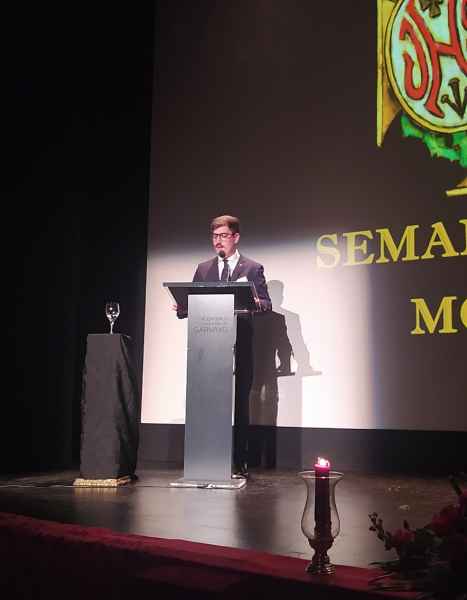 Después subía a las tablas del Teatro Calderón de la Barca D, Juan Aguado Gallego, cofrade motrileño y seminarista del Seminario Mayor San Cecilio de Granada. A través de su palabra, ha hablado de la voz de Dios y que también lo animo a conocerlo a través de las cofradías en la calle.