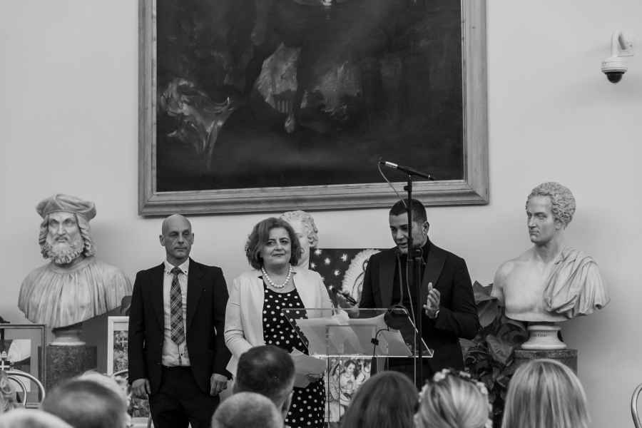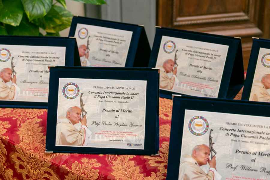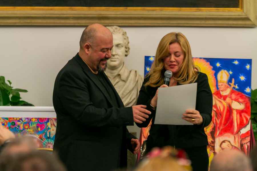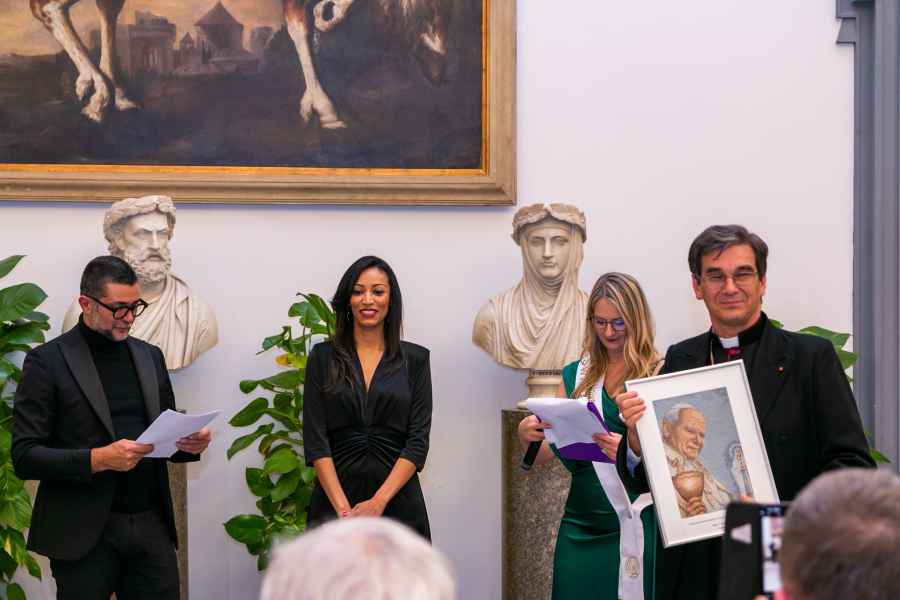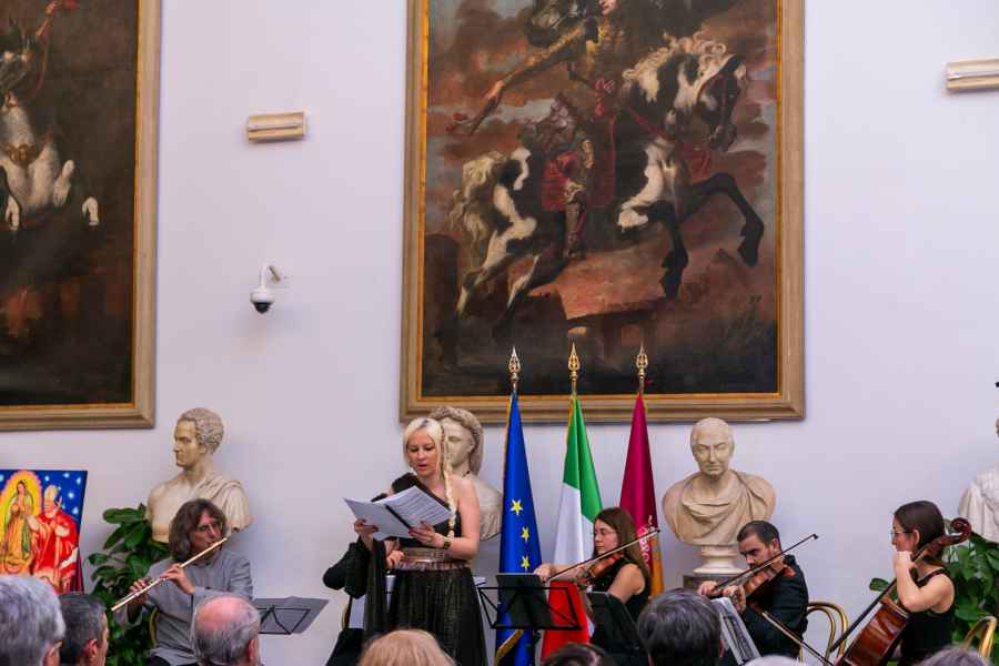 Martedi 17 gennaio nell'importante sala della Protomoteca in Campidoglio a Roma si è tenuto un concerto in onore dell'amatissimo Papa Giovanni Paolo II. L'evento che è stato possibile grazie al patrocinio dell'ambasciata della Polonia presso la Santa Sede e il comune di Roma ha visto la partecipazione di svariati artisti tra i quali ha spiccato il soprano Dominika Zamara che ha onorato l'associazione ''Tota Pulchra'' della quale e' membro.L'evento è stata una manifestazione artistica ad ampio respiro dove la musica si è compenetrata con l'arte figurativa e vice-versa. Il curatore d'arte Alessio Musella ha condotto le danze della serata, consegnando due premi artistici di rilievo quali il ''Premio Universum per la pace'' e il ''Premio Giotto'' oltre che a descrivere con puntuale dovizia di particolari le opere esibite(Tina Bellini,Francesca Falli,Felipe Cardena etc.) Si sono esibiti : oltre a Dominika Zamara ( vestita per l'occasione dalla stilista Marta Jane Alesiani) ,il direttore d'orchestra David Boldrini che ha eseguito una particolare versione dell'Ave Maria scritta appositamente per la voce di Zamara.Menzione importante va fatta a Melinda Miceli, critica d'arte ed ideatrice del summenzionato ''premio giotto'' che ha premiato con l'international art prize Giotto diverse personalità pubbliche e ecclesiastiche , tra cui ,il Presidente di ‘’Tota Pulchra’’ Mons. Jean Marie Gervais che ha apprezzato enormemente la stima riservatagli.