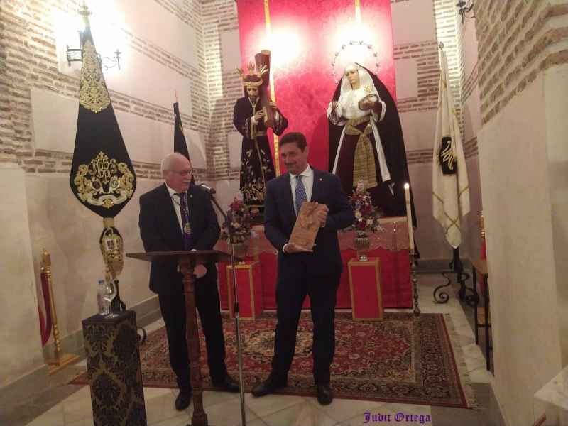 Posteriormente fue el turno de D. Javier Hernández Jiménez hermano de esta cofradía, costalero y primo del pregonero. Destacó que es una persona que está siempre cuando se necesita, a pesar de la distancia, esta complicidad que con nombrarse ya saben lo que necesitan el uno del otro, su compañero de fatigas.