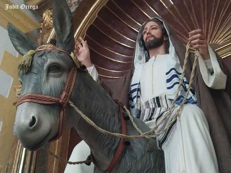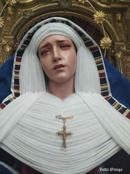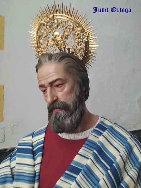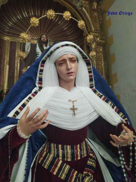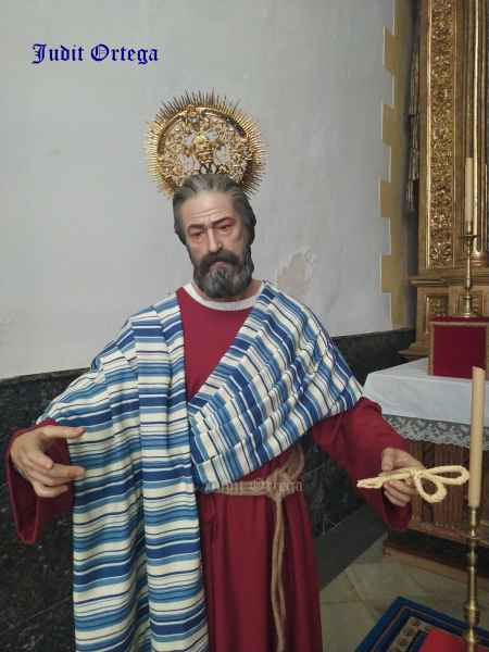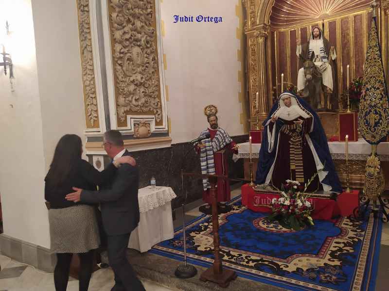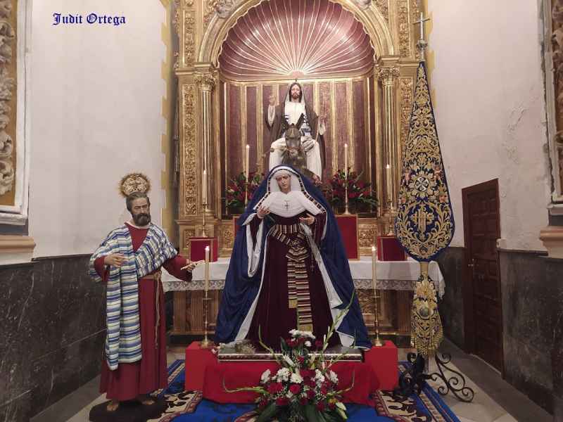 Los Sagrados titulares se encontraban en su capilla habitual vestidos de hebreos, aunque en esta ocasión la Virgen del Rosario y San Pedro estaban situados a nivel del suelo colocados sobre una alfombra en tonalidades azules.