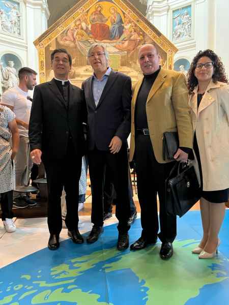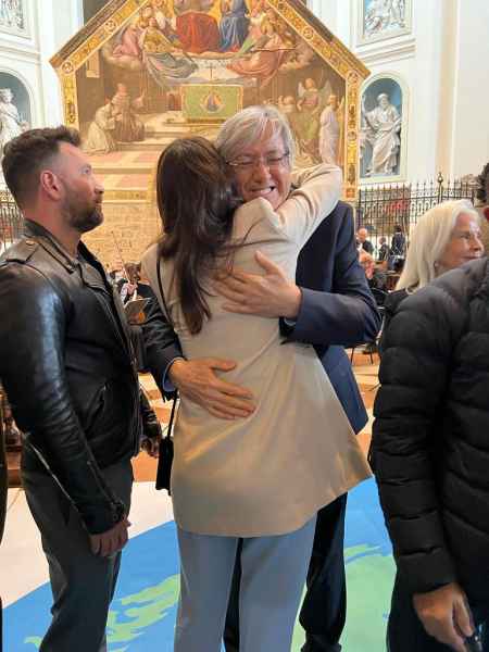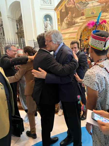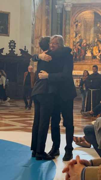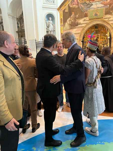 I partecipanti all’ “Abbraccio Universale” nel pomeriggio sono stati ricevuti da fra Francesco Piloni, Ministro provinciale dell'Ordine dei Frati Minori in Italia, che ha sottolineato quanto sia indispensabile per il presente la necessità della pace e della riconciliazione. Riprendiamo così il cammino iniziato 800 anni fa, andando verso un'umanità più tollerante e riunendo i due emisferi, per un mondo migliore e più equo, per tutti, come è il caso di Alejandro Roemmers, grande seguace di Papa Francesco nella sua crociata per la fratellanza.