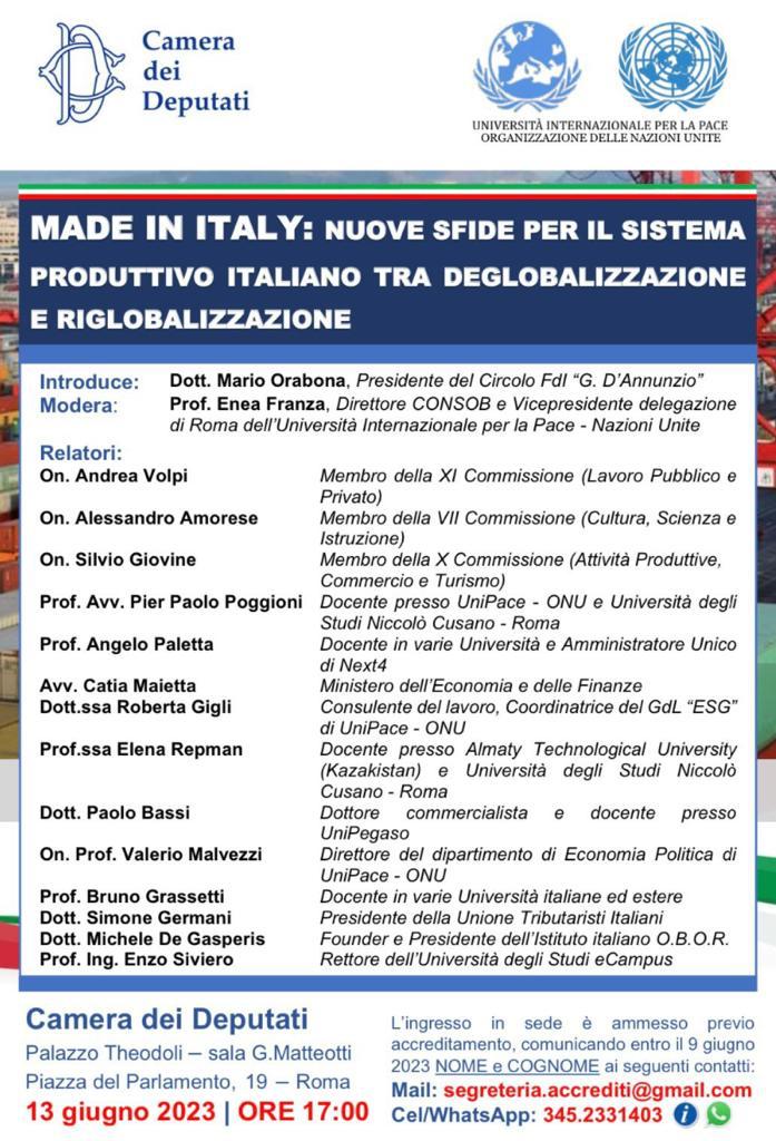 Il convegno, dal titolo "Made in Italy: nuove sfide per il sistema produttivo italiano tra deglobalizzazione e riglobalizzazione", ha visto la presenza di onorevoli, docenti universitari, imprenditori e professionisti del settore ed è stato un'occasione preziosa di scambio e dibattito su tematiche di grande attualità e di grande importanza per il futuro dell'industria italiana.