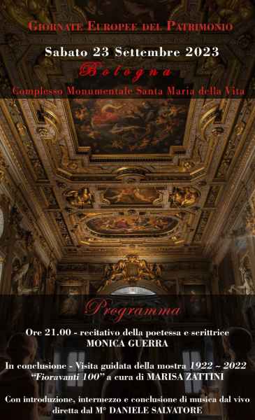 Per la celebrazione di queste giornate, nella sede del Complesso Monumentale di Santa Maria della Vita, a Bologna, Genus Bononiae propone – in un programma coordinato da Maria Elena Barbieri e dall’Architetto Marisa Zattini – una serie di eventi per le giornate di sabato 23 e domenica 24, con l’aggiunta di lunedì 25 settembre, a coronamento della chiusura della mostra per il centenario della nascita dell’Artista-Architetto Ilario Fioravanti.
