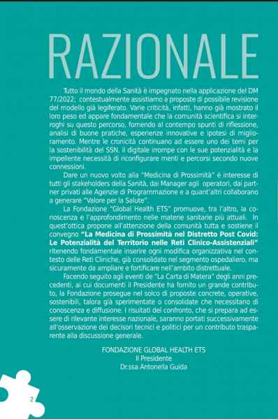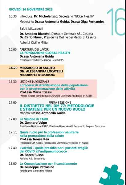 Il Delegato Tota Pulchra per la Campania, Pasquale Fabozzi, ha recentemente partecipato a un evento cruciale organizzato dalla Fondazione Global Health presso il Grand Hotel Vanvitelli il 16 e 17 Novembre. L'incontro, focalizzato su "La medicina di prossimità nel distretto post Covid", ha affrontato tematiche cruciali per il territorio e i suoi cittadini. I temi trattati: