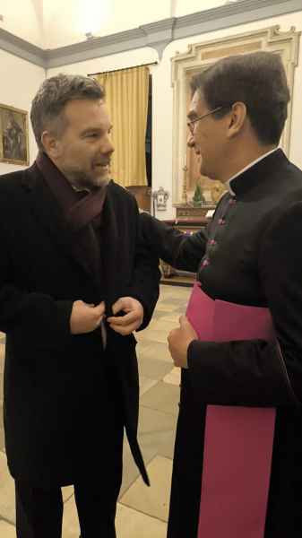 Il Duca ha abbracciato il Principe Emanuele Filiberto in un clima di riconciliazione familiare tra i due rami del Casato che non poteva scegliere, luogo e occasione più consona.