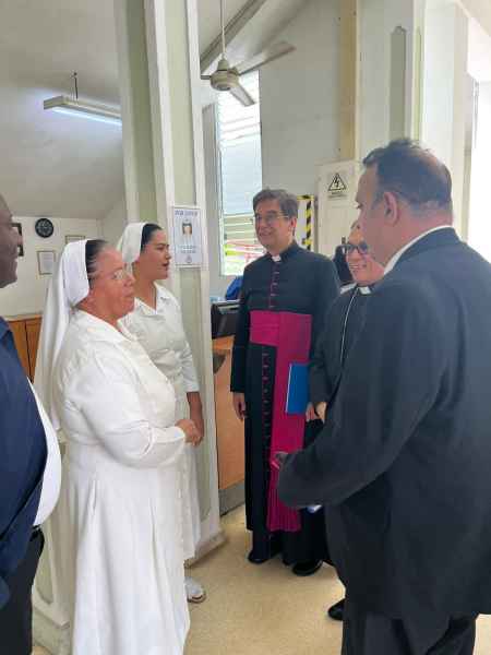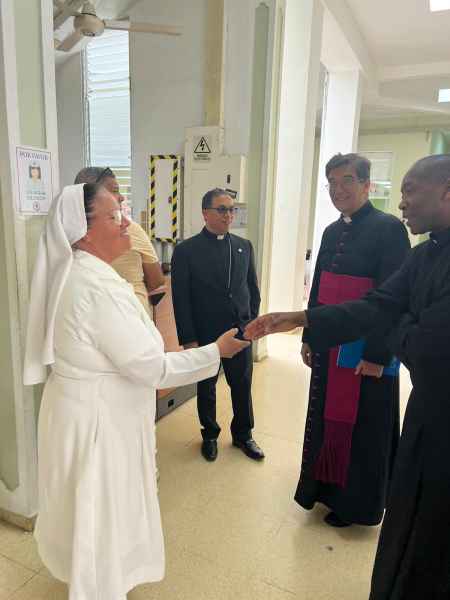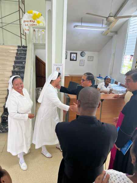 Il Monsignor Jean Marie Gervais assieme con reverendo padre Hygord Amédée sono partiti dalla casa arquidiocesana “ Maria de la Altagracia” incontrano nuove persone Fisner Vaillant direttore della Caritas e prete de la diocesi San Pedro de Macoris e la suora Marie Guerda Excéus .