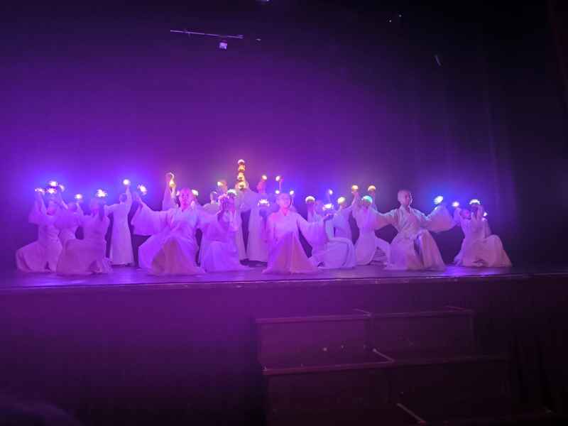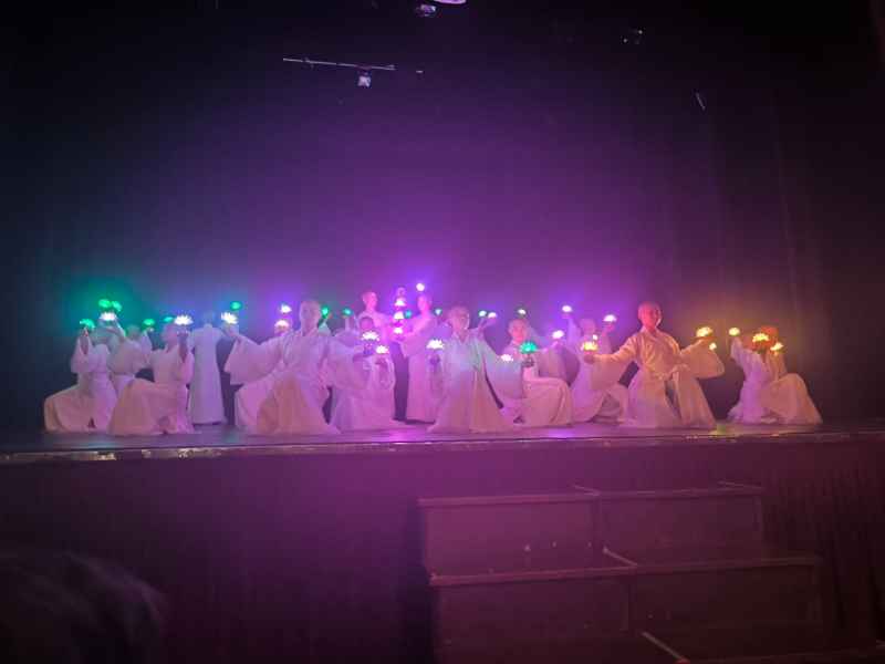 Nella seconda parte, la magia ha raggiunto il suo apice: il coinvolgimento del pubblico con danze che sembravano danzare con le ombre del tempo e delle tradizioni buddiste. I rituali vocali, intrecciati a interpretazioni corali del Requiem di Eliza Gilkyson e dell’Ave Verum Corpus di Mozart, hanno ancora di più amplificato l'atmosfera di comunione e meditazione. Ogni movimento e ogni nota hanno contribuito a un'atmosfera di serena meditazione, trasportando gli spettatori verso una dimensione di pura bellezza e riflessione interiore.