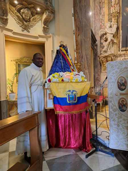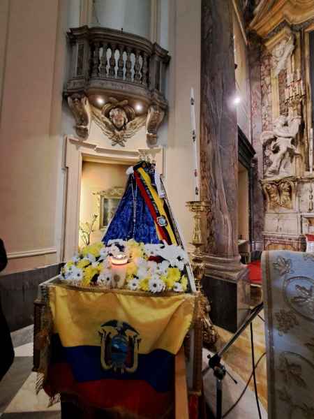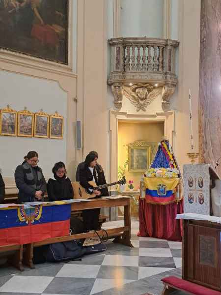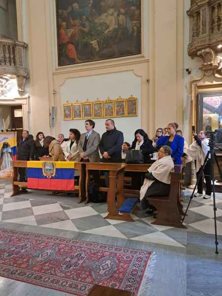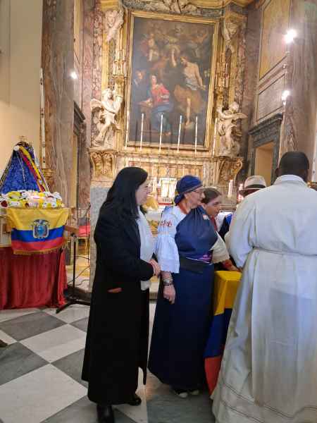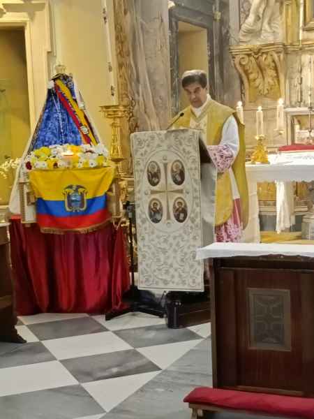 In questa festa dell'Immacolata Concezione, vorrei invitarvi a riflettere sul ruolo della Vergine Maria come Madre dell'unità. La comunità ecuadoriana è una comunità ricca di fede e tradizioni, e il legame con la Madonna del Cisne rafforza il senso di identità e appartenenza. Tuttavia, oggi, siamo anche chiamati a estendere questo spirito di unità e solidarietà a tutta la comunità cristiana. Guardiamo a Maria come la madre che abbraccia tutti i suoi figli, indipendentemente dalle loro differenze, invitandoci a costruire una società basata sull'amore, sul rispetto reciproco e sulla solidarietà.
