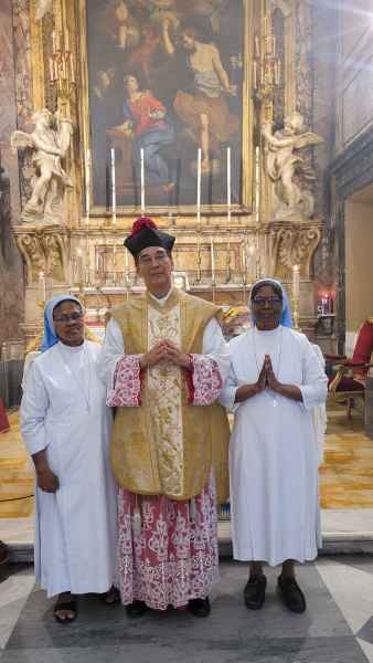 In modo speciale, questa liturgia si fa più intensa e viva nella presenza delle Suore Francescane del Cuore Immacolato di Maria, come suor Caterina e suor Selvi, che oggi rendono visibile, con la loro presenza orante e operosa, il frutto maturo di una semina evangelica compiuta oltre un secolo fa. Semina che deve molto alla figura luminosa del Servo di Dio Louis-Savinien Dupuis, uomo di Dio e missionario ardente, innamorato di Cristo e profondamente vicino ai poveri, in particolare alle giovani donne, che volle riscattare con la luce dell’educazione e della dignità cristiana.