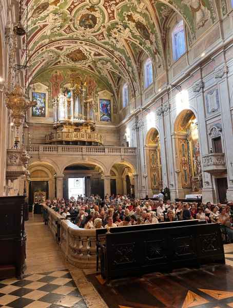 O Concerto do Coro Tomás Luis Victoria da Pontifícia Universidade de Salamanca encheu a Basílica dos Mártires para um final de tarde refrescante em que o público, que inundou a Basílica – nem mesmo para ficar de pé o espaço abundava – teve a oportunidade de ouvir obras de Bruckner, Monteverdi, Bardos e Victoria.