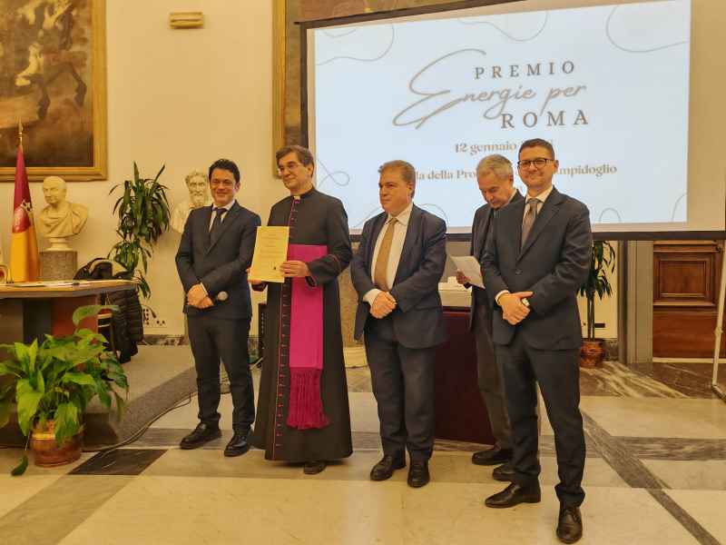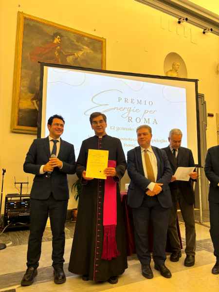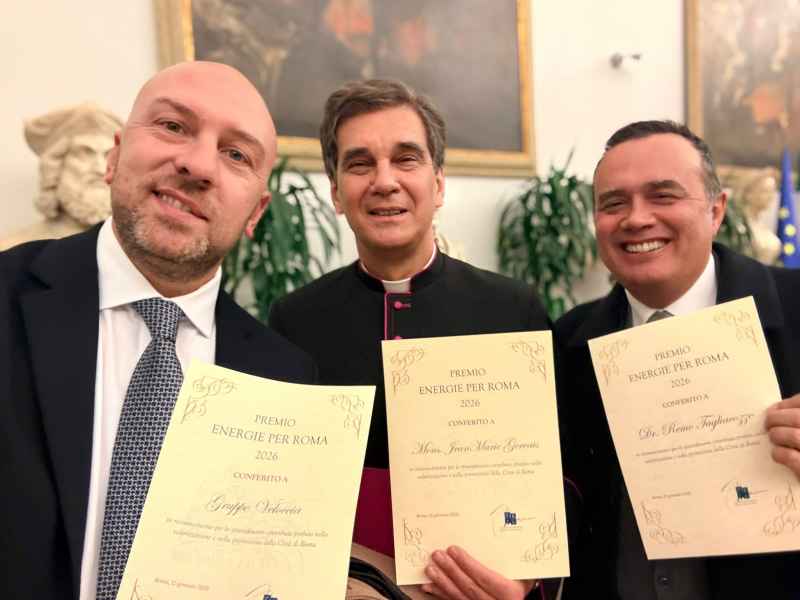 L’Associazione Tota Pulchra esprime viva soddisfazione e sentite congratulazioni per la prestigiosa premiazione conferita al suo Presidente, Mons. Jean-Marie Gervais, nel corso della cerimonia del Premio Energie per Roma 2026, svoltasi il 12 gennaio 2026 nella solenne cornice della Campidoglio, presso la Sala della Protomoteca.