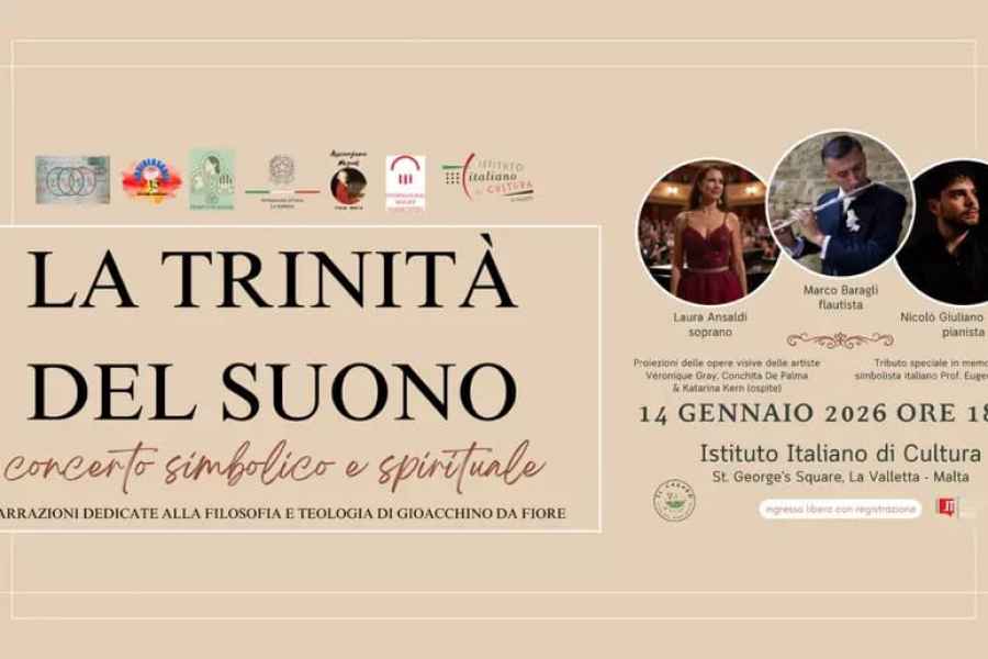La serata, promossa con fine sensibilità da Debora Comper per l’Associazione Mozart Malta, ha saputo coniugare musica, parola e arti visive in un itinerario di autentica elevazione spirituale, rendendo omaggio alla luminosa eredità di Gioacchino da Fiore, figura profetica che ha segnato la coscienza europea e che Dante Alighieri colloca tra gli spiriti sapienti del Paradiso, mentre San Bonaventura ne riconosce l’altezza spirituale.