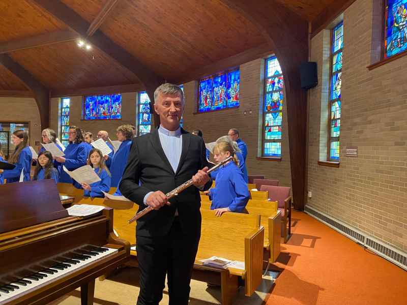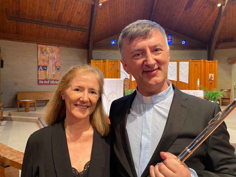 “Applause and emotion for father Marco Baragli. A mystical journey between flute and piano in Boston”.