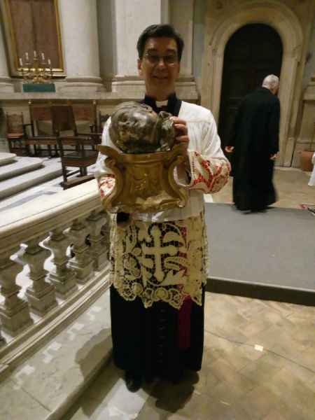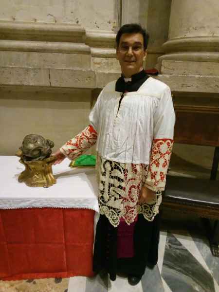 Il 29 gennaio 2019, presso la Chiesa Rettoria dei Santi Luca e Martina al Foro Romano in via della Curia 4, si sono svolti i “Primi Vespri Solenni Pontificali” della festa di Santa Martina presieduti dall’Abate di San Paolo Fuori le Mura R.P Roberto Dotta. La solennità è stata disposta da S.E.R Mons. Giuseppe Sciacca, vescovo titolare di Fondi, Segretario del Supremo Tribunale della Segnatura Apostolica e Rettore dell’omonima chiesa. Per iniziativa del Conservatorio di Santa Eufemia, anche quest’anno, è stato esposto il reliquario del capo di Santa Martina.