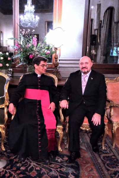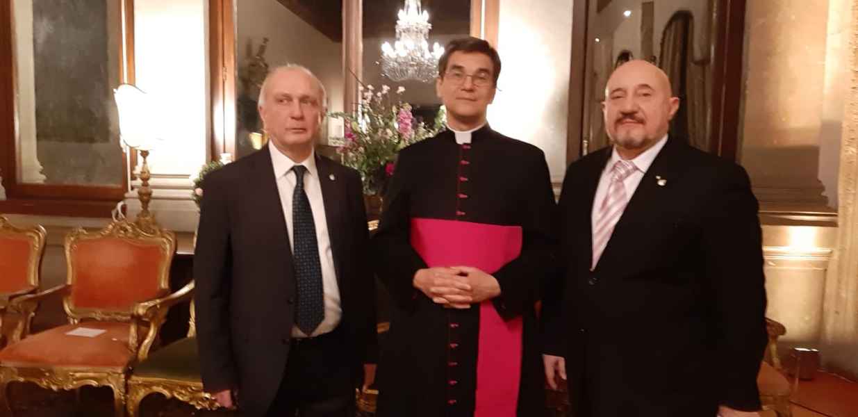 Durante l’incontro conviviale, Mons. Jean-Marie Gervais si è piacevolmente intrattenuto con il Conte Prof. Giuseppe Tedeschi, Addetto di Anticamera di Sua Santità, Rappresentante Ufficiale della Casa Reale di Montenegro, annoverato nel 2017 tra i Soci onorari dell’Associazione Tota Pulchra. Si è trattata di una lieta occasione d’incontro con gli Ambasciatori del Corpo Diplomatico accreditato presso la Santa Sede, che Tota Pulchra riceve con particolare gradimento durante i suoi eventi più esclusivi presso il Palazzo della Cancelleria Apostolica.