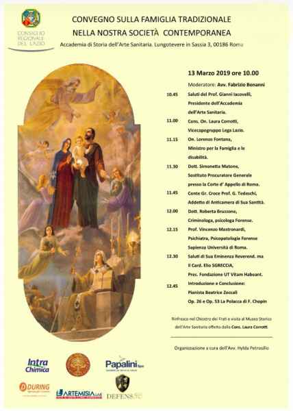 Il 13 Marzo 2019, presso la sede dell'Accademia di Storia dell'Arte Sanitaria sito all'interno dell'Ospedale di Santo Spirito in Lungotevere in Sassia 3 a Roma, si è svolto il Convegno sulla famiglia tradizionale nella nostra società contemporanea col patrocinio del Consiglio della Regione Lazio. Un bel momento d'incontro e di scambio culturale.