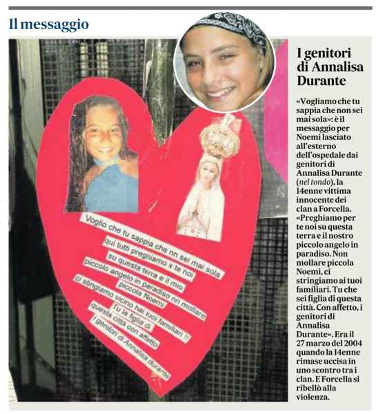 I giovani piemontesi si compenetrano talmente nella storia di Neapolis e di Annalisa Durante, che decidono di donare l’opera all’Associazione napoletana, la cui collocazione viene effettuata oggi nella Chiesa di Sant’Agrippino, per adesione del parroco don Antonio Del Vecchio, al fine di integrarla a pieno titolo nell’offerta culturale della “ZONA NTL – Napoli, Turismo & Legalità” di Forcella, Maddalena e Capuana.