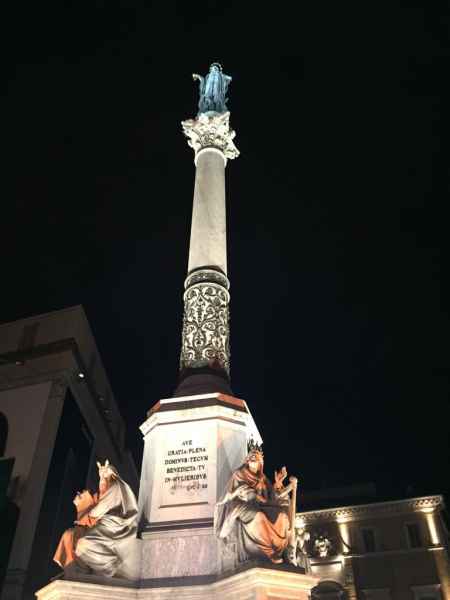 E’ grazie a un grande desiderio di Bruno Vespa, accolto con gioia dal sindaco di Roma Virginia Raggi, se la colonna dell’Immacolata Concezione, che sorge accanto a Piazza di Spagna, nella adiacente Piazza Mignanelli, ritorna ad essere illuminata dopo tantissimi anni di buio. La colonna, inaugurata l’8 dicembre 1857 grazie al lavoro certosino dell’architetto Luigi Poletti, è dedicata al dogma dell’Immacolata Concezione. Da ricordare che, ogni anno, il Santo Padre si reca sotto la statua della Madonna per unirsi all’omaggio della Città di Roma a Maria portando come dono un cesto di rose. Le rose stanno a indicare l’amore e la devozione del Papa, della Chiesa di Roma e degli abitanti della Città, che si sentono spiritualmente figli della Vergine Maria, e con questa corona vogliono deporre le loro ansie e speranze ai piedi della celeste Madre del Redentore.
