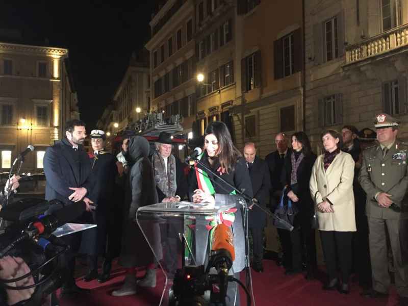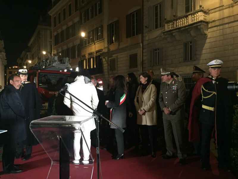 All’inaugurazione erano presenti: l'ambasciatore di Spagna presso la Santa Sede María del Carmen de la Peña Corcuera; il giornalista Alberto Matano nelle vesti di presentatore; il tenore Vittorio Grigolo che ha intonato l’Ave Maria, ed infine, il cardinale Angelo De Donatis, vicario di Sua Santità per l’Urbe romana che, dopo aver portato i saluti e la benedizione di Papa Francesco, rivolgendo il suo sguardo all'Immacolata, ha pronunciato le seguenti parole: «Ora sei rivestita di luce sfolgorante, fatta da mani d'uomo. Farà risplendere nella notte il tuo volto e ogni cuore ricorrerà a te».