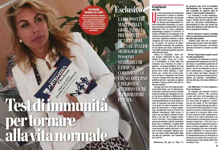 Artemisia Lab, inoltre, ha avviato anche un progetto di studio con l’Università di Tor Vergata, finalizzato alla stesura di un protocollo applicativo per monitorare l’eventuale diffusione di agenti patogeni, utilizzabile preventivamente al reingresso in azienda e durante lo svolgimento dell’attività lavorativa, che prevede l’utilizzo di un’altra metodica di rilevazione degli anticorpi quantitativa in chemiluminescenza.