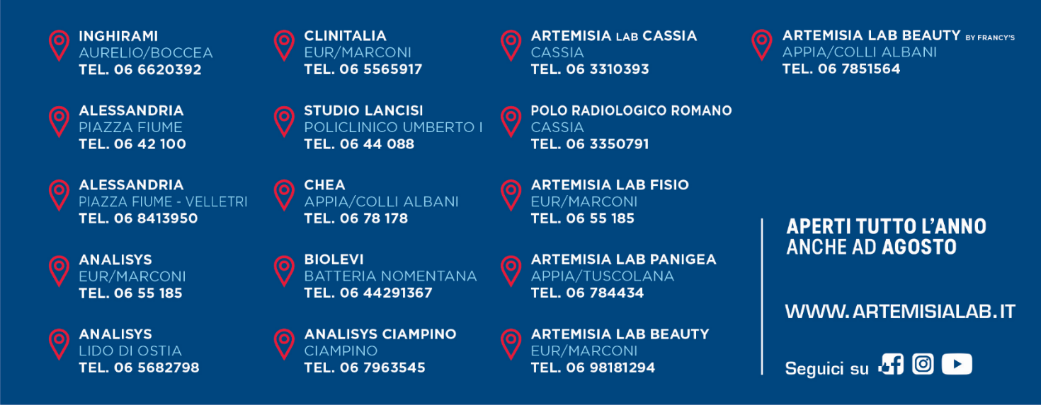 PER PRELIEVI A DOMICILIO: Artemisia Lab Chea – Tel. 06 78 178
