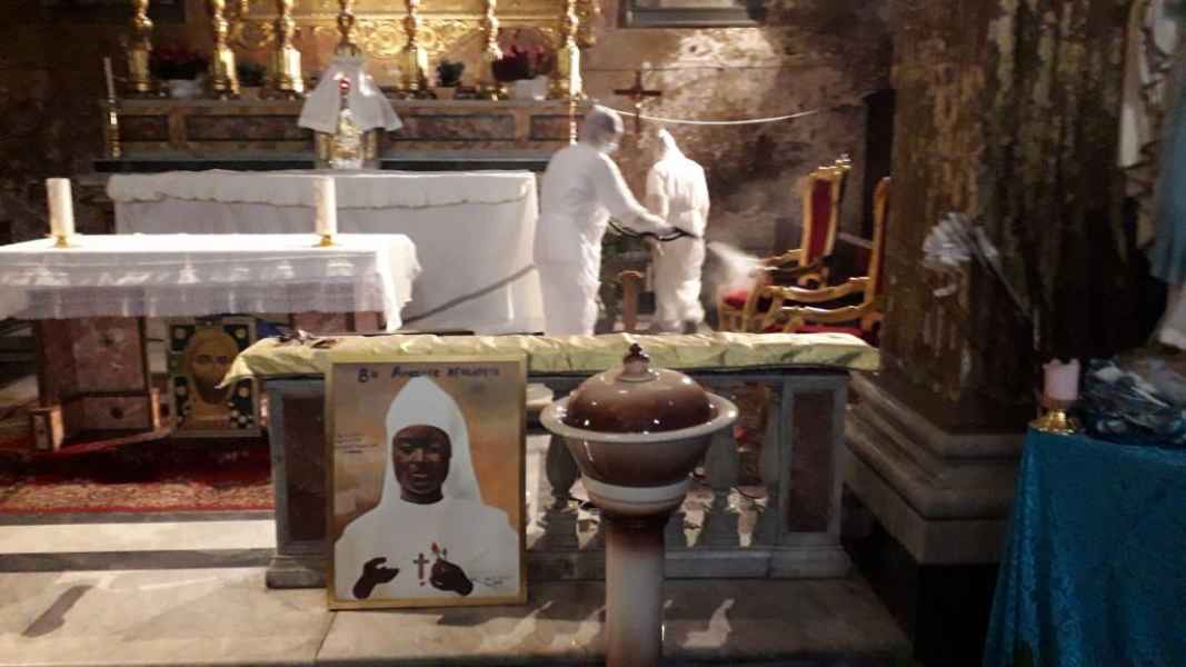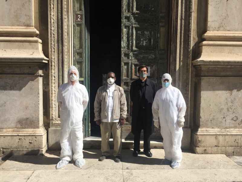 La chiesa della Natività in piazza Pasquino, in pieno centro storico di Roma a due passi da Piazza Navona, è stata oggetto, sabato 23 maggio, di un intervento di sanificazione e disinfezione promosso da “Tota Pulchra”. L'edificio, risalente alla fine del Seicento (1692), e associato, all’epoca, all’Arciconfraternita della Compagnia della Natività (gli Agonizzanti), sodalizio istituito nel 1616 i cui adepti pregavano appunto per gli agonizzanti, e i condannati a morte, ospita, dal 1994, la Comunità cattolica congolese di Roma (forte di 1200 persone circa), una delle ben 44 comunità etniche presenti nella diocesi dell’ Urbe. A Dicembre scorso, qui è stata celebrata la Messa cattolica col. rito zairese, per il 25mo anniversario della fondazione della cappellania e, soprattutto, l'apertura dell'Anno giubilare dei cattolici del Congo Kinshasa (l’ ex-Zaire).