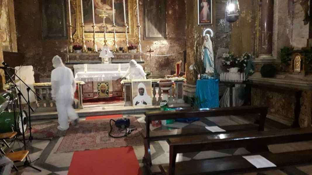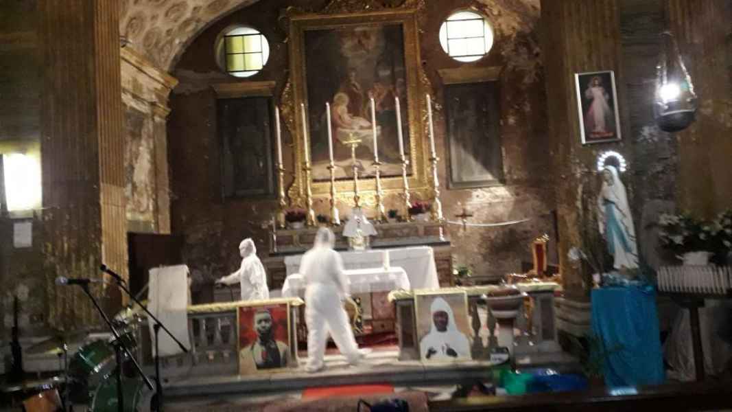 “La sanificazione della nostra chiesa – precisa Don Silvestro Adesengie, cappellano della Comunità- è stata fatta a cura appunto di Tota Pulchra: di cui ringrazio calorosamente il Presidente, Mons. Jean-Marie Gervais, che in piu’ occasioni ha sostenuto la nostra Comunità. E ringrazio di cuore i restauratori qualificati. Cesare Poderosi e Mariia Spiridonova, che col loro minuzioso lavoro ci han reso possibile, dopo piu’ di 2 mesi di chiusura, riaprire il tempio e riprendere a celebrare la Messa, Domenica 24 maggio, in pieno rispetto delle norme di legge sulla sicurezza .dei fedeli. A loro va tutta la nostra gratitudine, per un intervento, svolto gratuitamente, che, per tutta la città, segna una tappa importante nella fuoriuscita da questa pandemia: senza dimenticare il Vicariato di Roma, che pure ci ha promesso sostegno con l’invio di materiale per la sanificazione”.