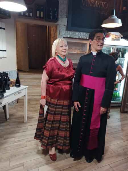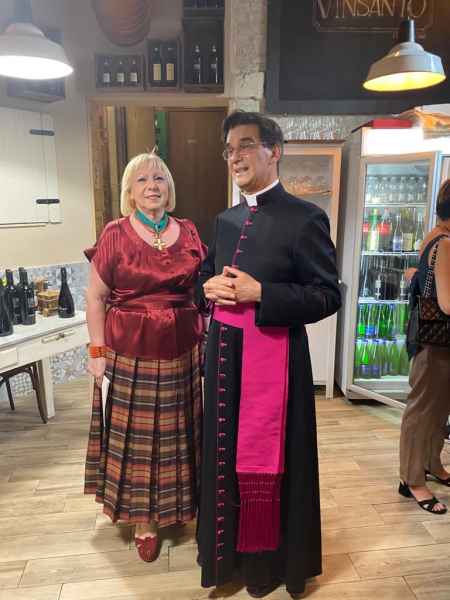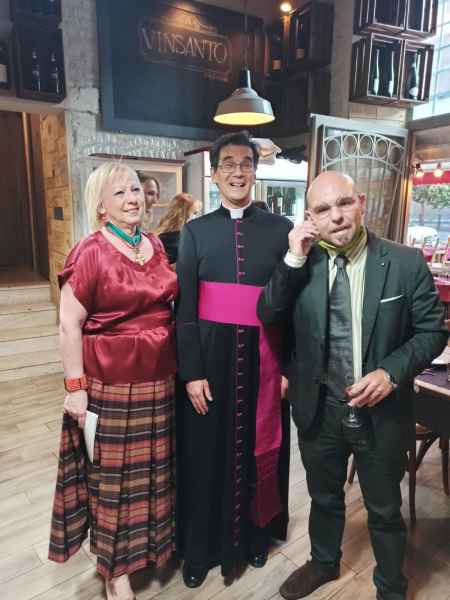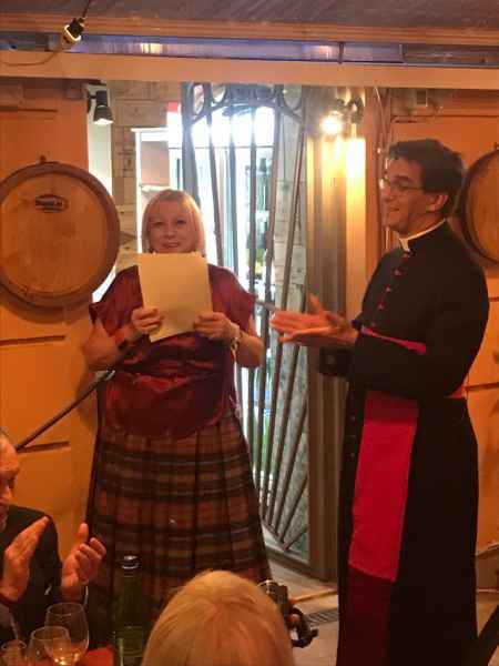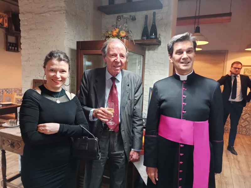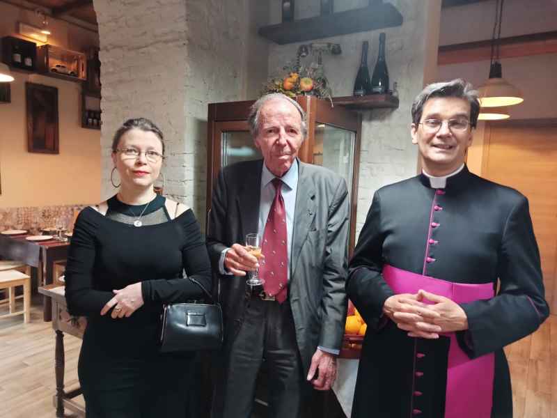 L'incontro - coordinato in modo molto preciso da Annamaria Croce - è stato poi l'occasione per festeggiare l'onomastico del Presidente, Mons. Jean-Marie Gervais: che è intervenuto per illustrare ai commensali (iscritti e simpatizzanti dell'associazione) le iniziative tuttora in corso e i nostri futuri progetti, in Italia e all'estero. Tra le personalità invitate c’erano i Principi Massimo e Pignatelli, due nobili venuti da Napoli, la Prof.ssa Stella Camelia Enescu, il Colonello Dott. Bartolomeo Casu, Laura Azzali, la Prof.ssa Katia Ranieri, i Conti Tomassini Barbarossa (Antonella Tomassini Barbarossa), l’Ambasciatore Bosco, il Presidente di Cassazione R. Tiola, il Generale di Corpo d’Armata Aldo Visone.