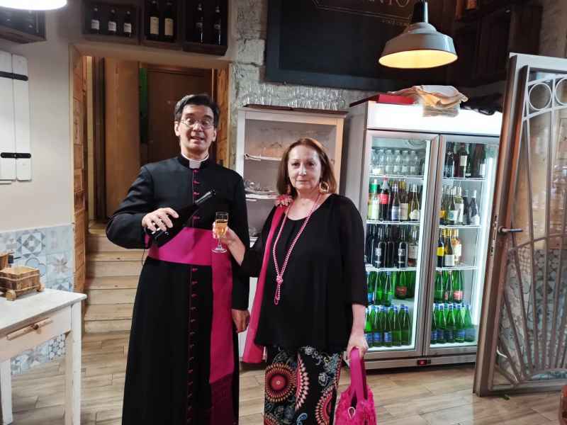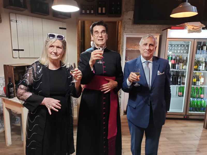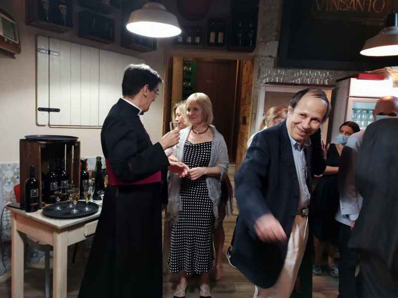 La serata - allietata da ottimi cibi e vini di qualità , come anzitutto lo spumante Olmo di “Tenuta Fontana”, ottenuto da uve Asprinio, ha rappresentato un momento importante per aiutare - con la presenza di tanti commensali - un locale come "Vin Santo": che, diretto dall'ottimo Stefano Maira, dopo aver aperto proprio a gennaio scorso, è stato fortemente penalizzato dal "lock down" delle attività economiche deciso dal governo a marzo, ed ora sta faticosamente risalendo la china. Stefano Maira ha rapidamente ripercorso l'"odissea" di questi mesi: formalmente terminata con la riapertura a giugno, ma in realtà ancora in corso. Come per tanti esercizi di ristorazione della capitale, alle prese ora anche con domande di contributi per ripartire da parte di Stato o enti locali il cui ottenimento, tuttavia, in italica negativa tradizione, risulta sempre tormentato e farraginoso.
