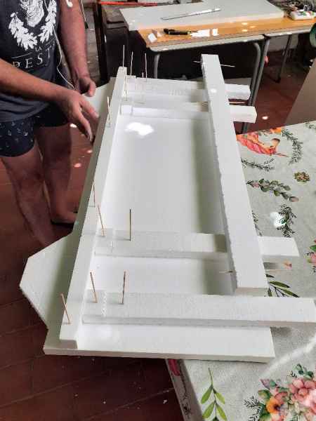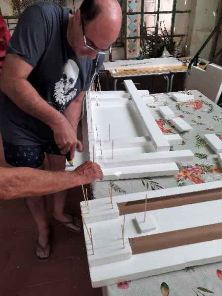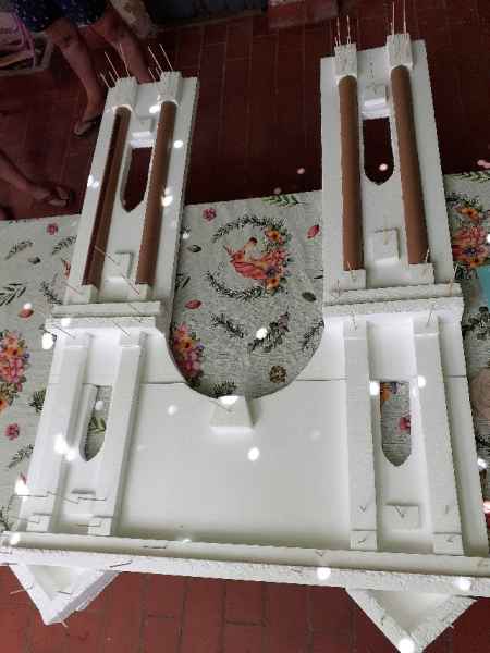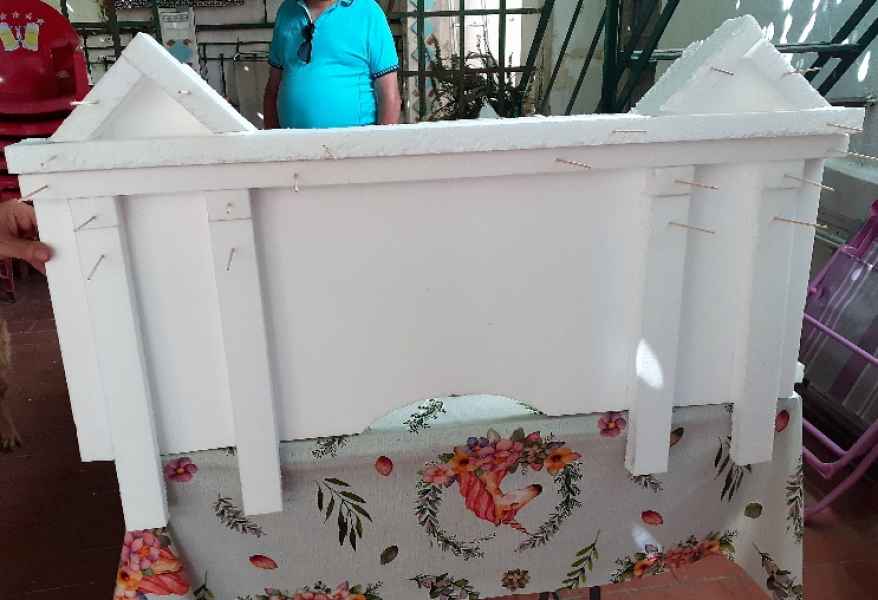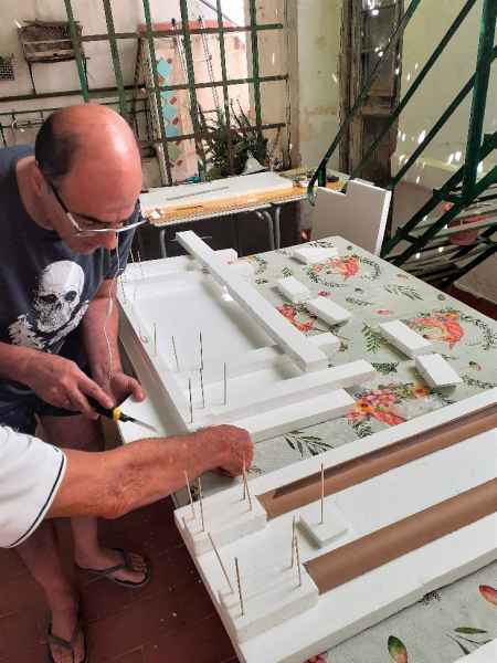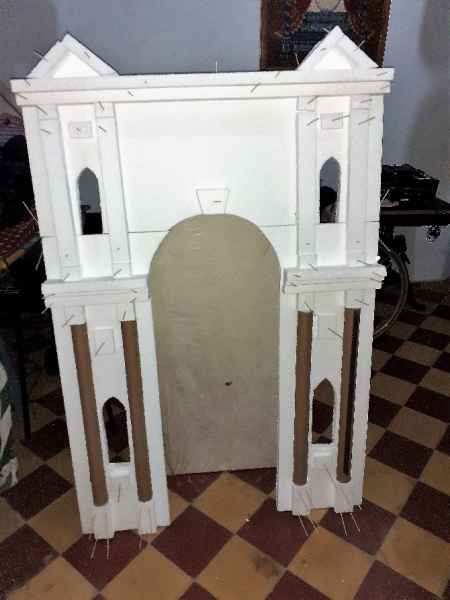 El altar lo realizó de porexpan, dibujó las piezas, las ensambló, las revistió de escayola para su rigidez, la envejeció y el resultado fue este.