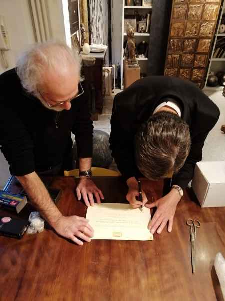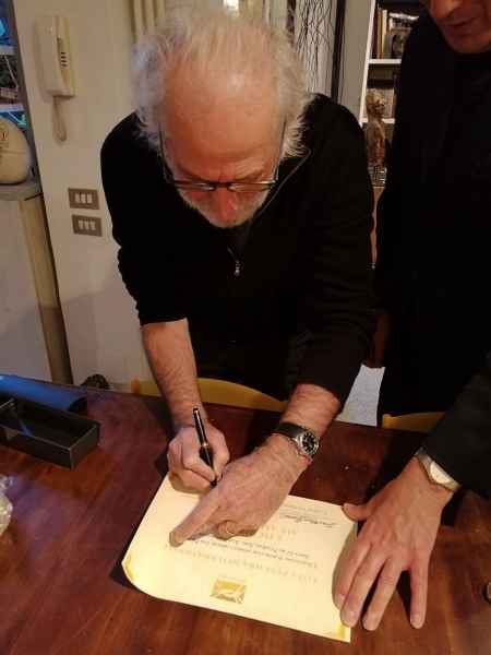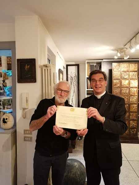 Durante questo incontro è stato assegnato al Maestro Antonio Teruzzi un certificato di riconoscimento per il suo valore artistico. Attestato che sancisce una lunga partnership tra la nostra Associazione e l'artista milanese. Le sue opere, la sua unica dedizione verso la sacralità dell'arte, hanno suscitato molto interesse in noi. Con questo incontro diamo il via a future collaborazioni tra noi e il Maestro Antonio Teruzzi, che graviteranno tra mostre, eventi e cooperazioni a lavori di importanza mondiale.