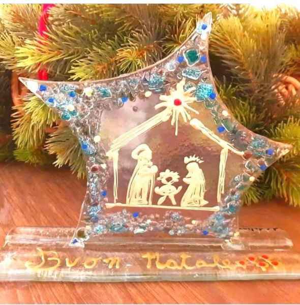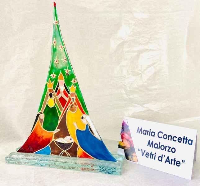 La maestra vetraria Maria Concetta Malorzo, nonostante la situazione di emergenza, nella sua piccola bottega artigiana, situata nel centro storico di Brindisi, ha continuato a lavorare, realizzando alcune opere in vetrofusione, in smalti e pasta oro e argento, per il Santo Natale 2020.