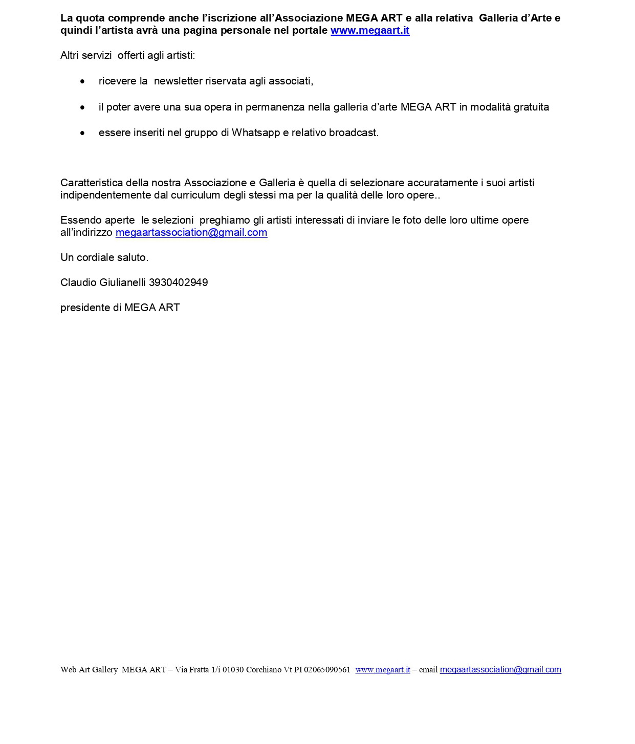 La galleria d'arte Mega Art (Presidente Claudio Giulianelli, artista di Tota Pulchra) e la sua Associazione, in collaborazione con la galleria Pocket Art Studio di Roma, organizza la mostra collettiva "Un Mondo di Colori" dal 19 al 26 marzo 2021. Di seguito il bando completo per partecipare.