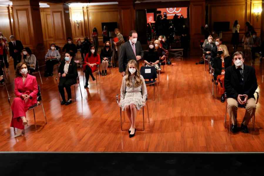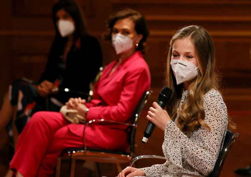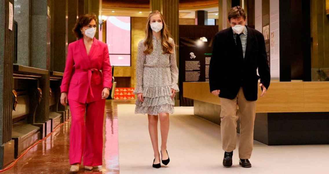 La vicepresidenta del Gobierno subrayó que, con su presencia en este acto, se ha querido mostrar “muy expresamente” el respaldo del Gobierno a Leonor de Borbón, que “ocupa una importante posición constitucional”. Calvo afirmó que la heredera es consciente de su papel y calificó de “acierto” su vinculación al fomento de la lengua y la cultura.