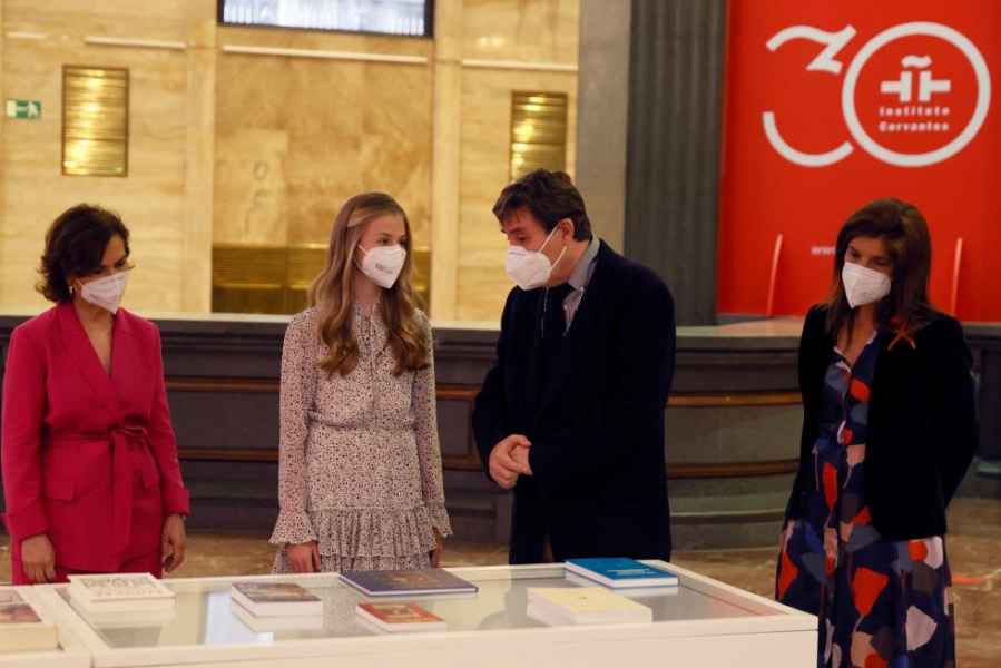 La princesa estuvo acompañada por la vicepresidenta primera del Gobierno, Carmen Calvo; el director del Instituto Cervantes, Luis García Montero; y la secretaria de Estado de Cooperación, Ángeles Moreno. Un momento cargado de simbolismo fue cuando Leonor entró en la Caja de las Letras. Ahí, en la caja 2021, situada entre las de Miguel Delibes y Severo Ochoa, depositó dos libros: la Constitución que leyó el 31 de octubre de 2018 (ahí escuchamos por primera vez su voz en un acto oficial, también en el Instituto Cervantes) y el ejemplar de El Quijote con el que participó en el Día del Libro. Después de introducir los dos ejemplares, García Montero entregó a la princesa la llave de la caja, en la que su recuerdo tiene carácter permanente, a diferencia de la mayoría de ilustres que han depositado su legado desde 2007 con fecha de apertura.