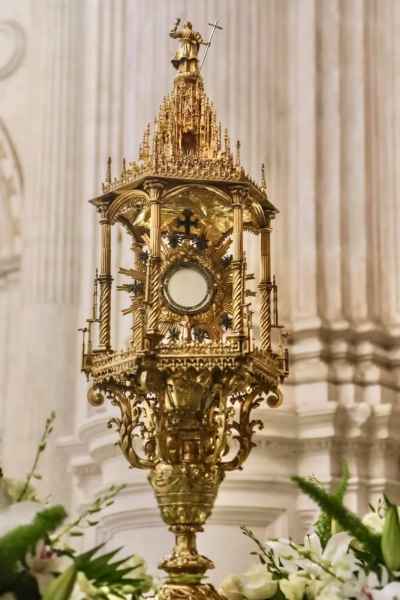 La custodia que porta a Jesús Sacramentado fue regalada por la reina Isabel la Católica ya que quería que el Corpus Christi fuera la fiesta más importante en la ciudad.