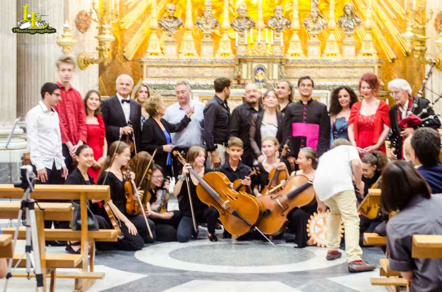 L'iniziativa è nata da un gemellaggio tra musicisti francesi e italiani: diretti, questi ultimi, dal Maestro Tonin Xanxhaphili, 8 volte Premio internazionale, insignito anche del "Premio Santa Sede" e dell'altro "Eccellenze italiane": che, docente di violino, ha suonato da solista o insieme ai suoi giovani allievi. Il gruppo musicale che le ha eseguite è, esattamente, l' Ensemble orchestra del "Corale delle Alpi e del mare" (nome che riflette chiaramente l'area di provenienza, compresa tra la Liguria e la costa francese sino alla Provenza), presieduta dall'organista Henry Albert e composta, in gran parte, di giovani diplomati al Conservatorio di Cannes. Con grande maestrìa e senso dello spettacolo, i musicisti han catturato l'attenzione del pubblico, eseguendo soprattutto brani della tradizione classica europea: solisti, Tonin Xanxhaphili, appunto, poi la francese Patricia Fernandez, mezzosoprano, e l'italiana Vincenza De Rinaldis.